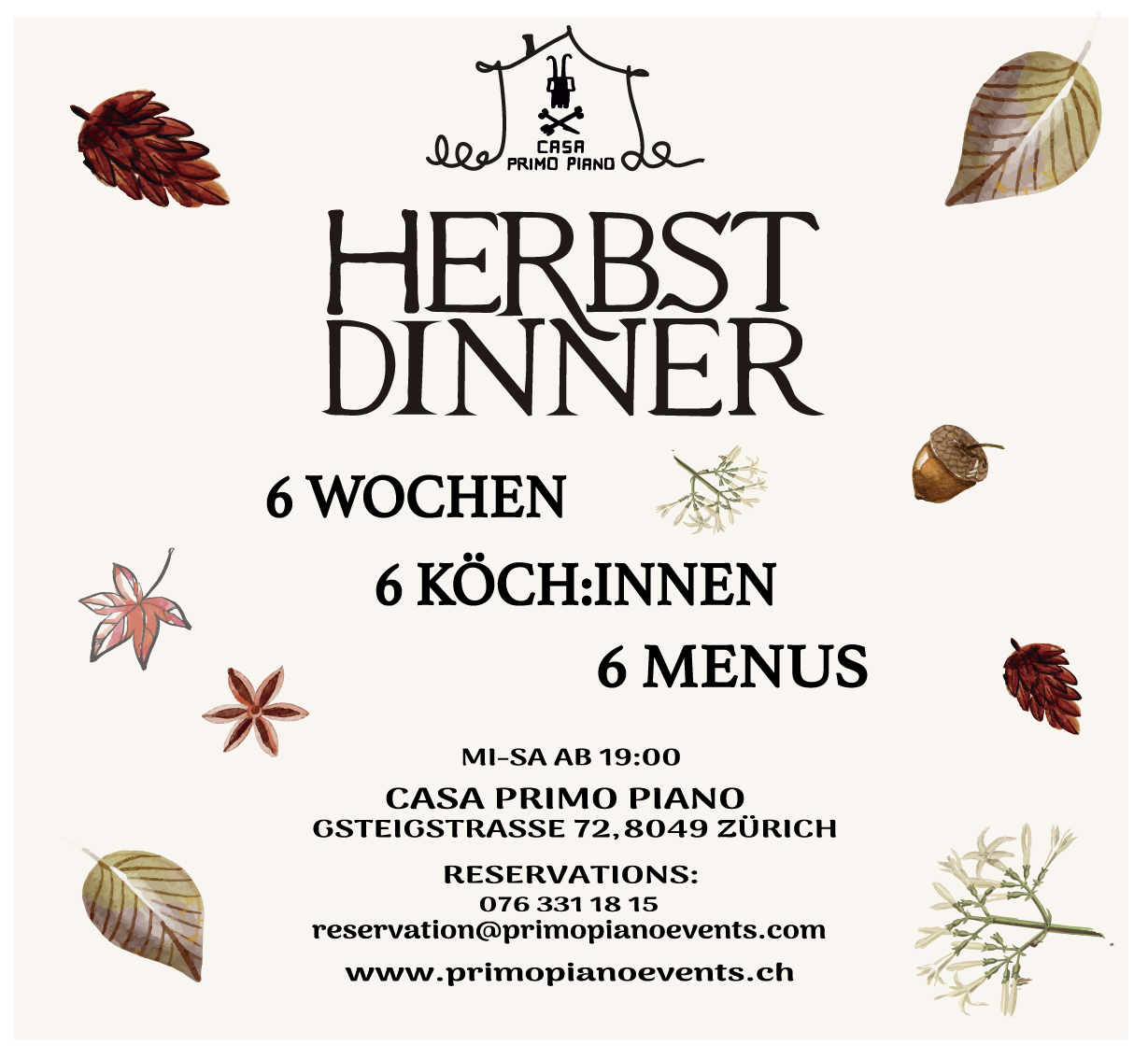 Vom 10. September bis am 18. Oktober servieren wir Euch für 6 Wochen von Mittwoch bis Samstag ab 19:00 Uhr ein 5 Gang Überraschungsmenu